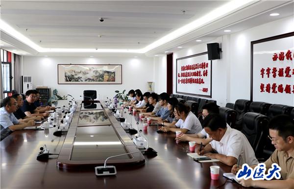 会见中,王宏伟对刘飞一行来校招聘人才表示欢迎。他介绍了学校的基本情况和毕业生生源情况,并表示学校愿意加强与兴县县委、县政府及当地医疗单位的沟通交流,建立校地、校院多方位、深层次的合作,不断加强对接互动,全力配合用人单位做好本次人才招聘工作。