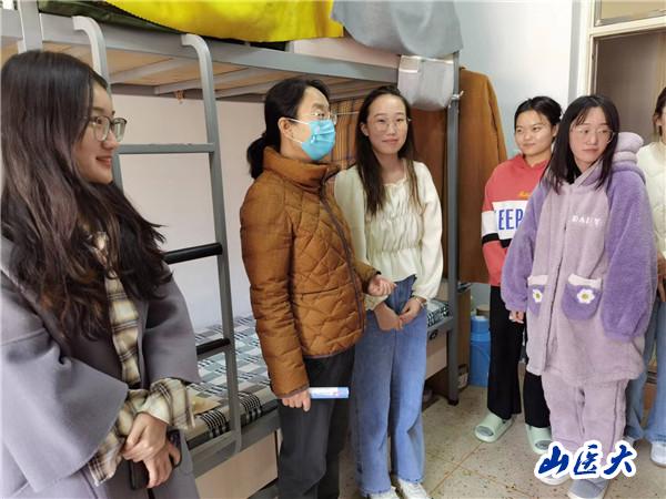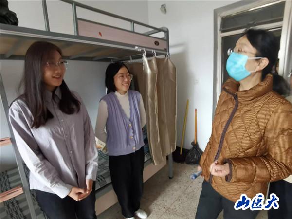 走访中,老师们对同学们干净整洁的宿舍环境予以肯定,提醒同学们在疫情防控上不可放松警惕,即使在校园内也要戴好口罩,宿舍要勤开窗通风;如有体温异常、身体不适等情况应及时联系辅导员以妥善处理,共同维护保障同学们正常的学习生活秩序。