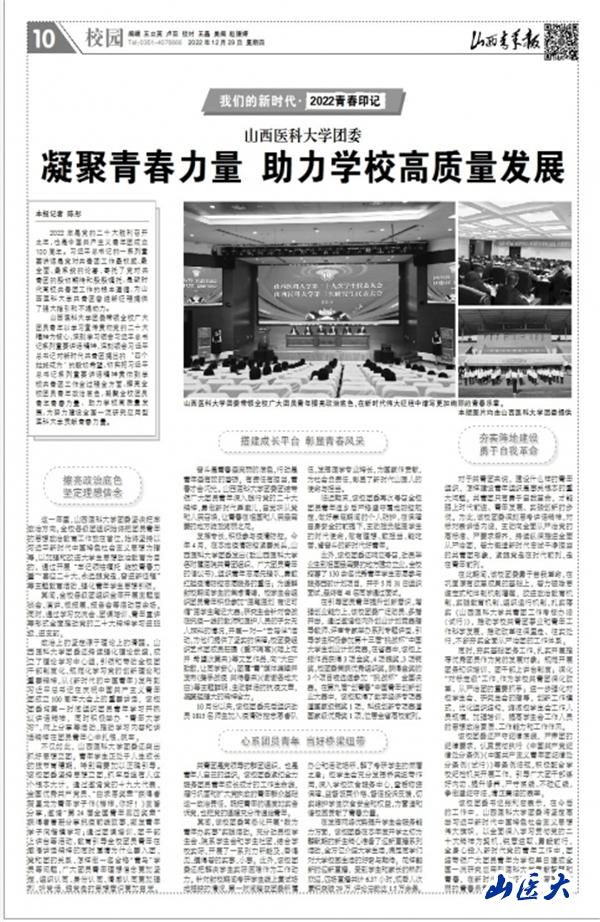 《山西青年报》整版专题报道我校共青团组织凝聚青春力量助力学校高质量发展