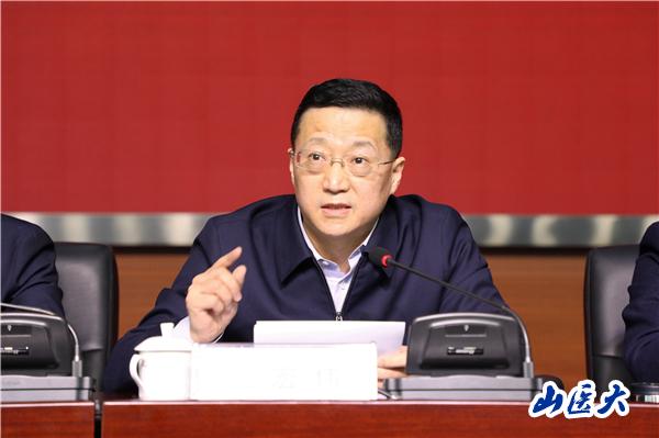 解军在讲话中对2023年学校各项重点工作进行了部署安排。他指出,党的二十大首次把教育、科技和人才一体化部署,对推进新时代教育优先发展、科技自立自强、人才引领驱动提出更高要求。省里明确支持学校优势学科建设,要求学校冲击“双一流”及A类学科。2022年,学校全面落实立德树人根本任务,推动多项大事要事取得重要进展,各项事业取得了新突破,保持了内涵发展的强劲势头,开启了建设全国一流研究应用型医科大学的新征程,进入了进一步深化改革、蓄能发展的关键时期。解军强调,唯有创新才是出路。对标省委省政府要求,对标国内一流大学,学校还存在差距和不足,要持续重点围绕专业、学科、人才、科研和民生五个方面抓好2023年各项工作落实。要坚定发展第一要务走好专业特色发展之路,坚持以医学为主,医工、医理、医文、医管协调发展,一体推进课程、教材、教学成果、附属医院、教育专家等专业核心要素建设,不断优化人才培养新范式,做好口腔医学、护理学专业认证工作,持续推进山医特色双创教育走向全国。要坚定学科第一支柱走好高峰高原建设之路,进一步优化特种医学一级学科建设方案,按照“国际一流、中国特色”要求加强高水平公共卫生学院建设,持续夯实高原学科,筑牢临床医学新高地。要坚定人才第一资源走好人才引领发展之路,实施本土院士培育项目、青年人才托举项目和高水平团队培育机制,坚持破五唯、立新标,深化绩效评价改革,实现人尽其才、才尽其用。要坚定创新第一动力走好创新驱动发展之路,持续推进科研融入国家战略需求,加强高水平科研平台建设,深入推进有组织的科研,力争国家级科技奖励实现突破。要坚定师生第一中心走好民生福祉共享之路,做好新阶段疫情防控工作,加速推进家属区改造和校区建设提档升级,筹建一流临床医学研究中心和数字“医谷”核心区,引领山西数字医疗转型发展。