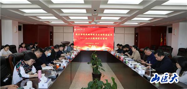 4月19日,校党委副书记彭月兰以《依法治国战略推进与法治校园建设》为题进行党的二十大精神宣讲,党委宣传部、学生工作部、教务部、团委、武装保卫部、后勤保障部、毕业生就业指导中心、研究生学院党委和各院系分管学生工作的负责人及部分工作人员50人聆听了本次宣讲。学生工作部部长张晶主持。