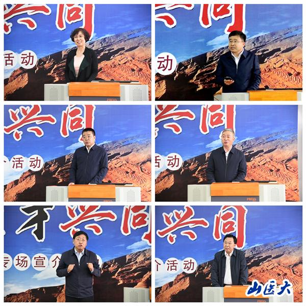 为进一步加强校地合作,深入开展2023年“书记校长访企拓岗促就业”专项行动,5月5日下午,我校在迎泽校区举办“筑巢引凤·聚才兴同”大同市校园招聘专场宣介活动。校党委副书记彭月兰,校党委常委、副校长刘春出席会议。大同市委组织部副部长郑天杰,大同市卫健委党组书记、主任纪青,大同市卫健委党组成员、副主任张晓琼,大同市第一人民医院党委书记、院长闫莉,大同市第二人民医院工作组组长杨波,大同市第三人民医院院长张宝成,大同市第四人民医院党委书记徐占有,大同市第五人民医院院长张强世,大同市中医医院党总支书记、院长姜世瑞等领导出席会议。校党委人才工作部、教务部、医院管理部、研究生学院、毕业生就业指导中心等相关部门负责人及200余名2023届应届毕业生参加会议。会议由毕业生就业指导中心主任郭建锴主持。
