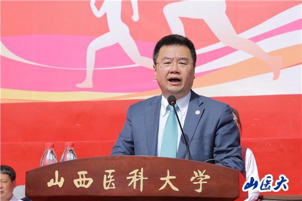 解军在开幕辞中指出,体育一直是德智体美劳“五育并举”的重要内容,是落实立德树人根本任务的重要途径。长期以来,学校以培养卓越医师为目标,不断提高体育教育水平,在体育课程改革、校园体育文化、学生体质健康、竞技体育等方面多点布局、全面开花。近年来,学校高度重视体育教育投入,大力支持开展全覆盖、高质量的体育活动,全面推行各项举措以提高学生健康水平,学生体质状况逐年提升。近三年,学校足球、篮球、排球、健美操等代表队,多次代表学校参加国家级及省级比赛并取得了骄人的成绩。这些成绩的取得,激励着更多的师生医护员工更加热爱体育,强身健体。六十重开新甲子,既是漫长的时间跨度,更是一个重要的里程碑时刻。本届运动会恰逢六十甲子,是有史以来规模最大、比赛场次最多、参赛单位最全的一次运动会,是所有山医人团结相聚的一次盛会。希望全体运动员、全体裁判员会坚持“友谊第一,比赛第二”的原则,以更快、更高、更强的体育精神投身比赛,赛出友谊、赛出公平、赛出水平。本届运动会一定能够办成精彩、团结、奋进的盛会,为早日建成全国一流研究应用型医科大学贡献青春力量和体育力量!