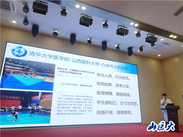 7月21日,暑期临床实践教学营总结汇报会暨结营仪式在介休市人民医院举行,十二名学生小组代表分别作了学习成果汇报。清华大学医学实验教学中心主任刘晓玲、我校教务部副部长秦洁及介休市政府、市医院领导参加了仪式并为同学们颁发结业证书。