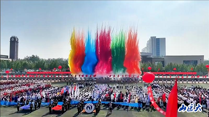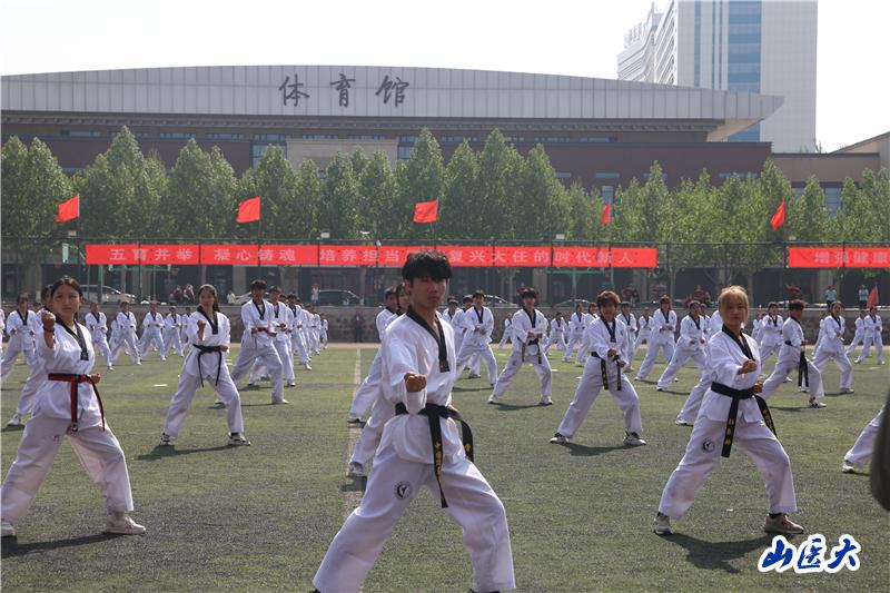 随后,大型文体展演开始。第二临床医学院编排的扇子舞《上春山》,学校夕阳红舞蹈团编排的灯笼舞《祖国你好》,山医体育教学成果足球、武术、柔力球、体育舞蹈、跆拳道等展示将运动会开幕式的气氛再次推向高潮。