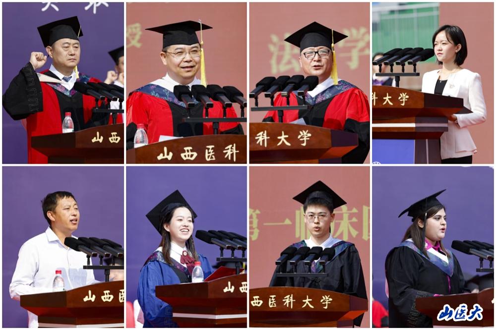 基层代表、临汾市大宁县乐堂村“最美乡村医生”贺星龙在发言中讲述了自己扎根贫瘠偏远的吕梁山南麓24年,守护黄河岸边28个村百姓健康的历程,荣获“全国优秀共产党员”称号、“白求恩奖章”等,勉励毕业生们要用自己所学所长服务基层,服务百姓,用实际行动诠释医学生誓言。