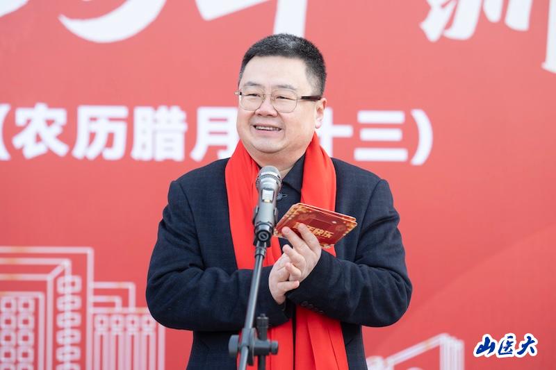 王军代表学校党政,向为学校发展作出重要贡献的老同志、勤勉敬业的教职医护员工、笃志好学的山医学子以及关心和支持学校发展的广大校友和各界朋友致以节日问候和新春祝福。他指出,2024年,学校坚持不懈用习近平新时代中国特色社会主义思想凝心铸魂,深入学习贯彻党的二十大和党的二十届二中、三中全会精神,扎实推进党纪学习教育走深走实,坚决扛起“双一流”创建使命,牢牢把握山西高等教育“百亿工程”重大机遇,齐心协力绘就发展新图景。“红石榴”工作室被中共中央、国务院授予“全国民族团结进步模范集体”。获赠学校百年华诞日在天安门广场升起的国旗。ESI全球排名前1%学科由3个增至6个。特种医学蝉联全国第一。联合华大在全国首开《智能生物计算》前沿课程,进入“全国教学创新强校TOP100”前40。国家重点研发计划重大专项单项经费达历史新高。首次获批国家基金委海外优青项目。成为全国首家获批国家原子能机构核技术研发中心的高校。入选《2024年中国内地高校顶刊发文年鉴》顶刊成果Top100高校。反向病原学徐建国院士工作站、“科技外交官之家”山西站落户学校。师生医护学习、工作和生活环境持续改善。