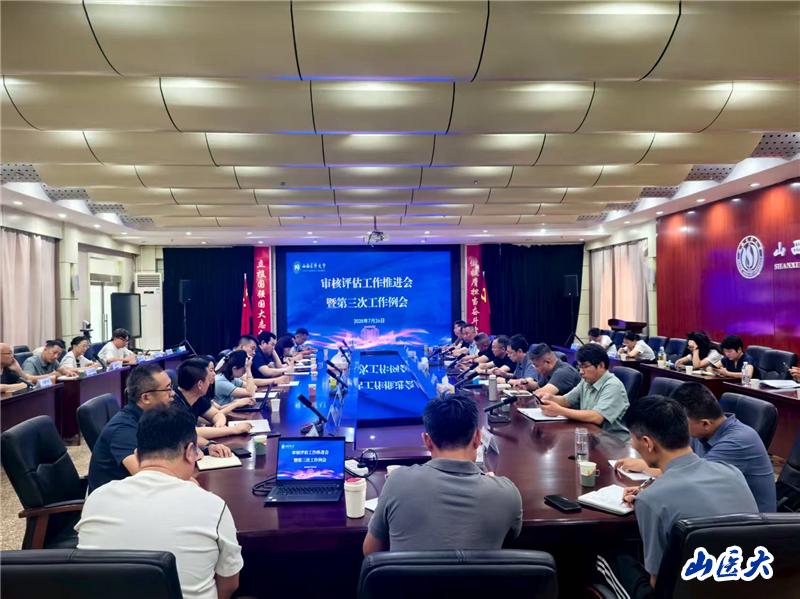 7 月 26 日上午,我校在迎泽校区教学办公楼十三层大会议室召开审核评估工作推进会暨第三次工作例会。审核评估各工作组牵头部门负责人、相关部门领导,各教学单位院长、教学副院长,临床医学院教学院长及教学部主任,评建办工作人员等 50 余人参会。会议由校党委常委、副校长焦向英主持。