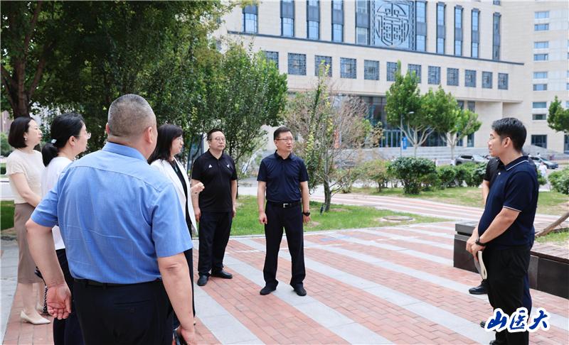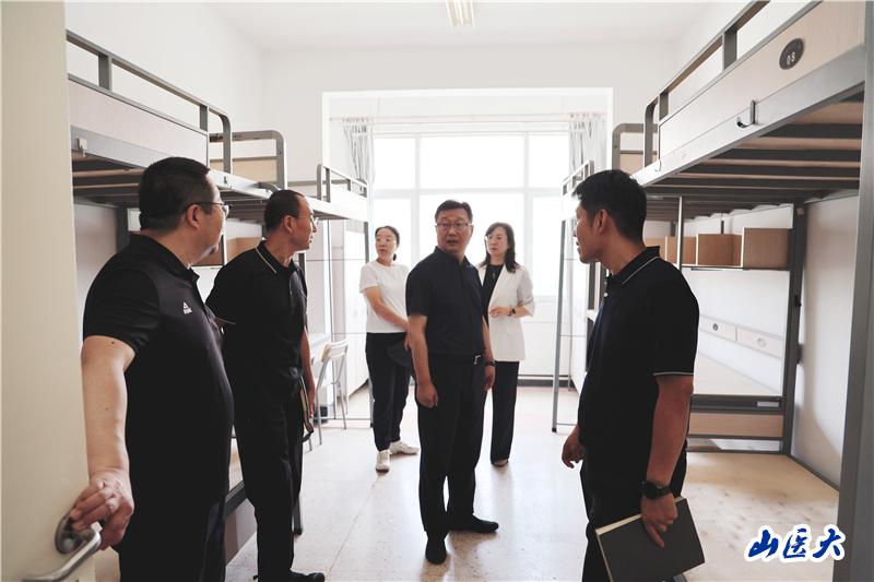 2025级新生开学在即,山医校园已悄然涌动起温暖的期待。9月11日上午,校党委书记王军与校党委副书记彭月兰,校党委常委、副校长武志芳一道,带领学校办公室、党委宣传部、党委统战部、学生工作部、保卫部、后勤保障部、资产管理部、网络中心、研究生学院、国际教育学院等相关职能部门负责人,走进中都校区各重点公共领域场所,细致检查新生报到和开学各项准备工作。