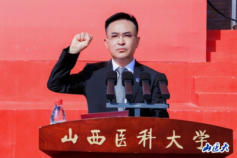 解军在讲话中代表全校师生医护员工对2025级新同学表示热烈欢迎,对晋中市委、市政府带给全体新同学们的温暖与关怀表示感谢。他指出,学校在106年的办学历程中,积淀的优良传统和文化品质传承历久弥新,闪耀着时代光芒。我们山医,是一所浸润五四精神、传承红色血脉的百年医学学府,一所勇挑时代重任、服务国家战略的百年医学学府,一所不断砥砺奋进、勇于追求卓越的百年医学学府。山医的百年荣光,由前辈铸就;山医的未来辉煌,将由同学们书写。作为师长和校长,解军以“做‘有理想、敢担当、能吃苦、肯奋斗’的新时代好青年”为题,向新同学们提出四点希望:一是立受阅方阵之志,铸就忠诚报国魂;二是淬铁血担当之勇,磨砺攻坚硬脊梁;三是历千锤百炼之苦,锻造过硬真本领;四是扬团结奋进之风,谱写时代新华章。他祝愿同学们在山医这片孕育英才的沃土上,学有所成,业有所精,梦想成真,前程似锦。