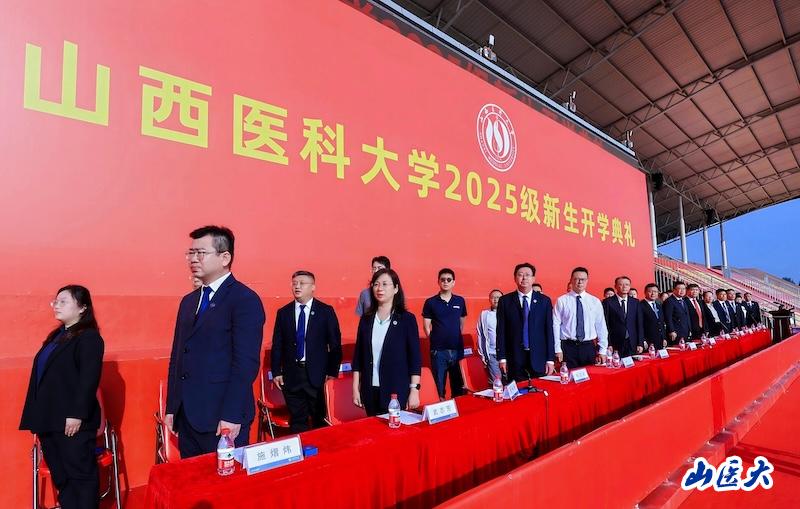 9月14日上午,我校2025级新生开学典礼在中都校区风雨操场举行。来自五湖四海的6225名新同学汇聚山医,展现蓬勃朝气,昂扬青春自信,共同迎接学业生涯的新起点。晋中市政府副市长张拥军,清华大学长聘教授、基础医学院院长李海涛,华大集团相关专家,我校党委书记王军,校长解军,校党委副书记彭月兰,省纪委监委驻校纪检监察组组长、校党委常委杨文斌,副校长张岩波,校党委常委、副校长焦向英、武志芳,第二临床医学院党委书记安健,第一临床医学院副院长施熠炜等,学校各职能部门、各培养单位负责人,新生思想政治辅导员,以及部分2025级新生的家长等参加了典礼。