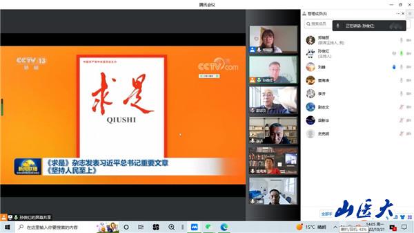 10月31日下午,法医学院党总支理论学习中心组以腾讯会议为平台,采取线上形式专题学习了习近平总书记重要文章《坚持人民至上》。学院党政班子成员、教工党支部书记、办公室主任、专职组织员参加集体学习。校党委理论学习领导小组成员、马克思主义学院直属党支部书记董海涛列席旁听。