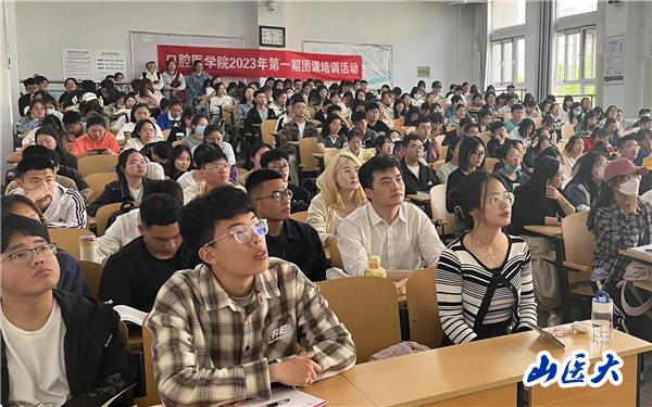 为深入贯彻党的二十大精神,积极响应学校号召,4月18日上午,口腔医学院分团委在中都校区慎思楼b201教室举办了2023年第一期团课培训。培训由学院分团委书记张楠主讲,入党积极分子、推优同学及学生干部共100余名团员青年参加学习。