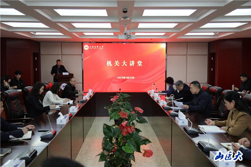 2月29日,机关党委在中都校区教学办公楼第五会议室举办机关大讲堂2024年第一期,机关党委各党支部书记和全体委员参加,会议由机关党委副书记成星亮主持。