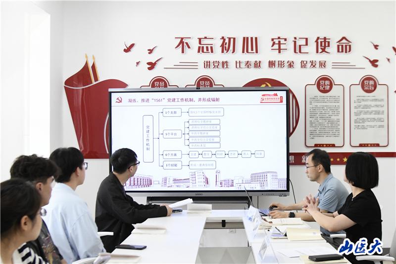 毓慧A功能型党支部第五党小组组长、药学院教工第三党支部书记赵承孝以《党建引领 服务学生 协同育人》为题,分享“全国党建工作样板支部”的建设经验。提出以“强国行”专项行动为契机,充分发挥“双带头人”示范引领作用,复制推广“1561”党建工作机制,借鉴教工党支部的工作特色和亮点,把毓慧A功能型党支部建好建强。