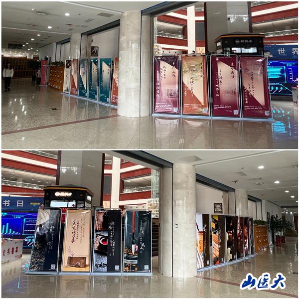 图书馆还在二楼大厅设置了“一本书的奇幻漂流”图书漂流展、“天下书迷故事展”线下书展、“书香致远·字句铿锵——语录展”线下书展和纸电同步荐读书架,精选百余本国内外经典书籍供广大师生借阅,书籍涉及哲学、文学、历史、教育、科普、医学人文等多个领域 。
