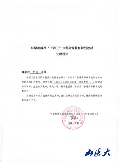 多年来,牛侨教授承担本科生和研究生的教学,长期致力于多层次教材建设,曾主编普通高等教育“十五”“十一五”和“十二五”规划教材《职业卫生与职业医学》(中国协和医科大学出版社)、《职业卫生与职业医学(双语教材)》(人民卫生出版社)和《预防医学》(英文改编版、科学出版社),在业内享有良好的声誉。