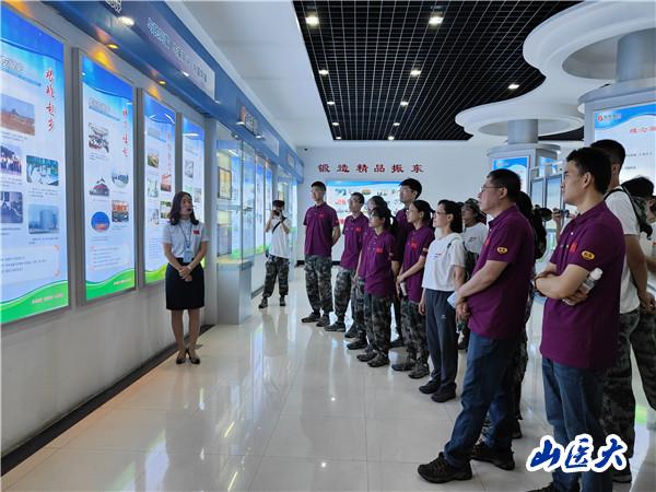 在山西振东健康产业集团有限公司,师生们深入振东企业文化展厅、科技中心、百亿片剂生产线、扶贫办、医药物流中心、饮片公司和标本展览室,认真听取振东集团发展历程、企业文化和管理模式,详细了解种植-研发-生产-销售一体化健康产业链,跨时空感受中药从传统种植、炮制工艺到现代萃取、精制科技的历史与现代变迁,深刻感悟想干、敢干的创新理念、精准化管理模式和深厚文化底蕴,深刻感受“与民同富、与家同兴、与国同强”的企业文化。