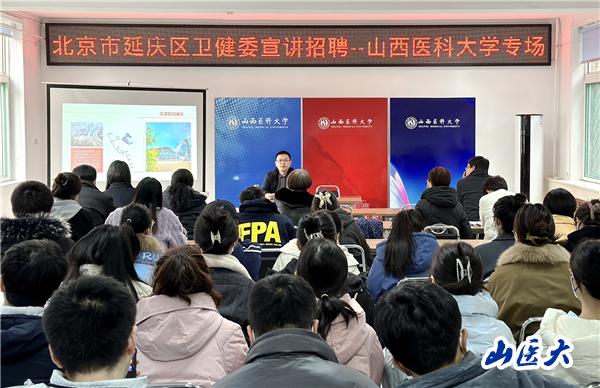 2月21日下午,我校在迎泽校区图书馆一层招聘室举办2023年首场线下专场校园招聘宣讲会,北京市延庆区卫健委党委副书记高琳琳一行8人携北京大学第三医院延庆医院、北京中医医院延庆医院、北京市延庆区妇幼保健院和北京市延庆区疾病预防控制中心等4家用人单位来我校选贤纳才,100余名2023届毕业研究生积极参会,用人单位提供了近50个工作岗位。