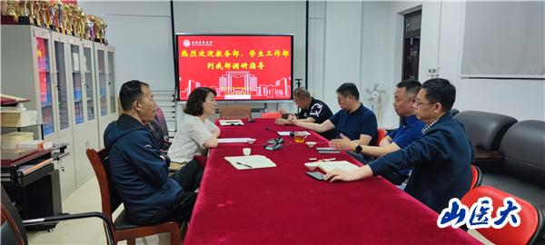4月18日下午,我校教务部部长覃凯、学生工作部部长张晶、学生工作部副部长张宇斌一行到体育教学部(运动康复系),就体育教育工作开展调研研讨。体育教学部(运动康复系)主任曹小清、党总支书记殷凤以及办公室主任王建功、科教科科长杨英一同参加调研座谈。