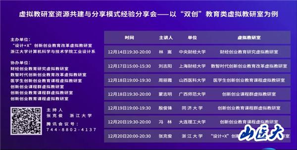 12月14日,教育部“设计+x”创新创业教育改革虚拟教研室与浙江大学计算机科学与技术学院主办的虚拟教研室资源共建与分享模式经验分享会-----以“双创”教育类虚拟教研室为例的系列讲座顺利召开。18日,我校教育部医学生创新创业教育课程虚拟教研室负责人周丽霞教授做《科技自立自强视域下医学生创新创业教育课程虚拟教研室的建设与发展》专题分享。