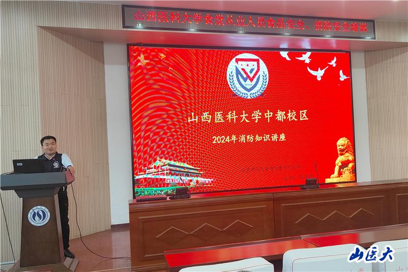 为了深入贯彻落实《中华人民共和国食品安全法》及其实施条例、《企业落实食品安全主体责任监督管理规定》和学校关于进一步做好消防安全工作的通知精神,进一步提升食堂从业人员的专业素养和安全意识,3月2日下午,后勤保障部联合武装保卫部、科技产业开发中心在中都校区基础医学院报告厅举办了食品安全和消防安全培训。迎泽校区、中都校区食堂和大学生服务中心的从业人员、管理人员和原材料供货人员等参加了培训。晋中市市场监管综合行政执法队二分队队长王晓光、学校科技产业开发中心主任高永红、后勤保障部党总支副书记杨艳宏、武装保卫部消防管理中心主任李学智到会指导,会议由后勤保障部饮食管理科科长牛拴成主持。