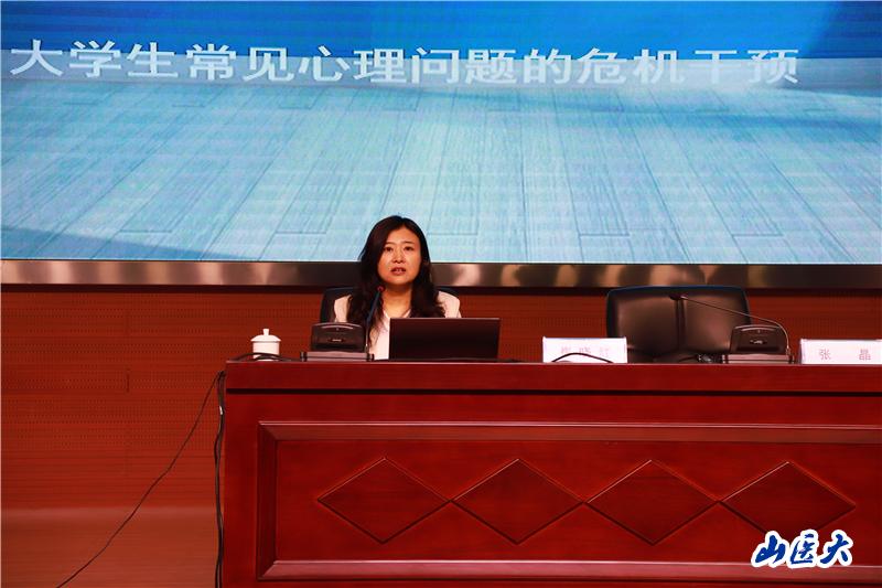 5月15日下午,第21届心理健康月系列活动——心理健康教育专题培训在我校中都校区举办。山西白求恩医院精神卫生科崔晓红副主任医师以《大学生心理问题识别与危机干预》为主题,对全校各院系分管学生工作的负责人、全体思想政治辅导员、学生工作部工作人员及学生心理委员代表进行了专题培训。培训由学生工作部部长张晶主持。