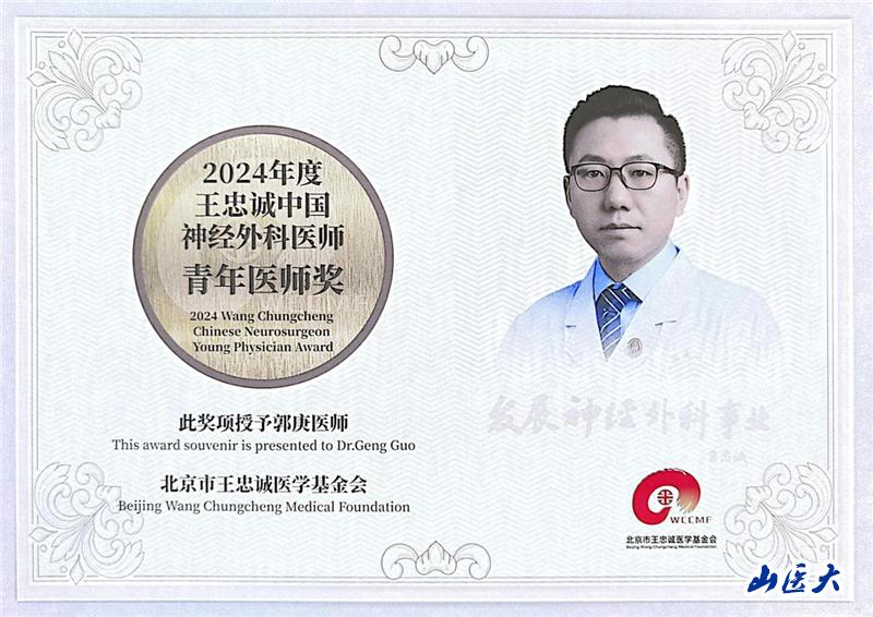 我校第一医院郭庚主任医师荣获“王忠诚中国神经外科医师青年医师奖”