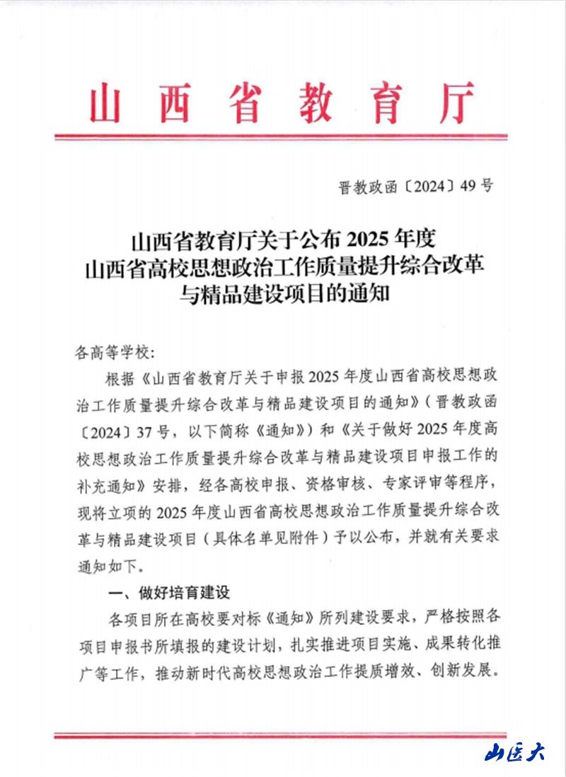 喜讯!我校14个项目入选2025年度山西高校思想政治工作质量提升综合改革与精品建设项目