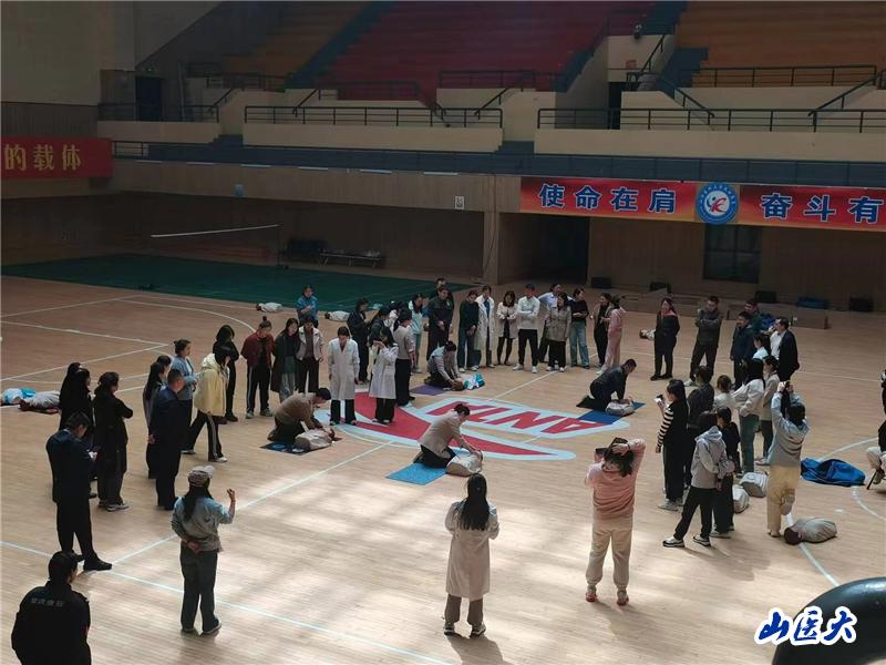 随后,实践队成员围绕心肺复苏深入阐释了“黄金4分钟”的重要性,并就“确保周围环境安全、判断患者意识、呼叫急救支援、胸外按压、开放气道、人工呼吸”等标准步骤逐一进行演示,指导参会人员进行练习,辅导员们分组进行模拟急救操作,实践队成员及体育教学部的专业教师对他们的操作流程、动作规范等方面进行严格观察。通过实训,大部分辅导员都熟练掌握急救技能,取得良好的学习成效。