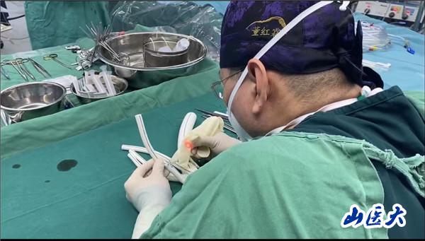 据我校第二医院血管外科学科带头人董红霖教授介绍,主动脉夹层指主动脉血管腔内的血液从主动脉内膜撕裂部位进入到主动脉中膜,而主动脉中膜因为压力产生了更大程度的撕裂,使主动脉壁处于真假两腔分离的状态。A型指内膜破口处位于升主动脉部的一类主动脉夹层,撕裂而导致血液进入中膜的范围可以超过主动脉弓,甚至到达腹主动脉/髂动脉。主动脉夹层病情极为凶险,而且死亡率较高,未及时治疗者死亡率能够达到65%—70%(1天—2周内),故一旦确诊主动脉夹层A型应立即行手术治疗(升主动脉置换、Bentall手术、Sun式手术等)或腔内介入治疗。与传统A型主动脉夹层开放手术相比,我校第二医院血管外科手术团队积极创新、勇开先河,在手术方式、手术器械等方面不断进行改进,明显缩短了心脏停跳、体外转机时间以及脑缺血时间,有利于患者术中生命体征的维持和术后恢复。