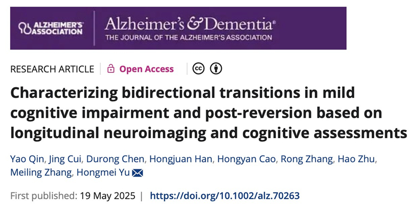 5月19日,我校公共卫生学院余红梅教授团队在Alzheimer's & Dementia(中国科学院一区TOP期刊,IF=13)发表研究成果《Characterizing bidirectional transitions in mild cognitive impairment and post-reversion based on longitudinal neuroimaging and cognitive assessments》,公共卫生学院卫生统计学教研室青年教师秦瑶为第一作者,余红梅教授为通讯作者。
