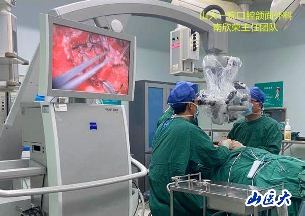 手术按照计划先对患者颊部瘢痕组织进行切除和松解扩大张口度,然后切除舌背肿瘤,再从前臂切取组织瓣,游离移植至颊部组织缺损处,折叠皮瓣同时修复颊部皮肤和黏膜的缺损。术中发现患者颞部浅静脉已经被放疗破坏,只能解剖深面的颞深静脉备用,颞浅动脉也较正常变得纤细而缺乏弹性。南欣荣教授在显微镜下将皮瓣动静脉和颞部对应血管进行了精细吻合,经过6个多小时的艰苦鏖战,手术获得成功。目前,患者术后恢复良好,张口度较术前明确好转,将择日出院。