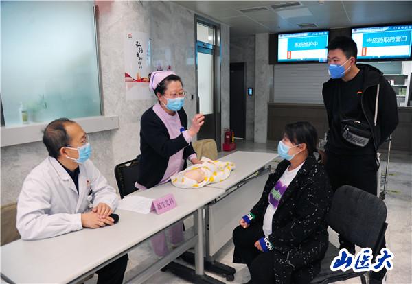 产科护士长刘芳和护理骨干王红媛现场讲解了哺乳的姿势、喂养的要点、新生儿正确的含接姿势,并现场指导各位准妈妈如何正确地母乳喂养。新生儿科护士张倩对此次主题内容“袋鼠式护理”进行解读,护士梁姣姣进行现场示范,希望通过袋鼠式护理的推广,让社会各界关注早产儿现象,降低早产儿病死率。