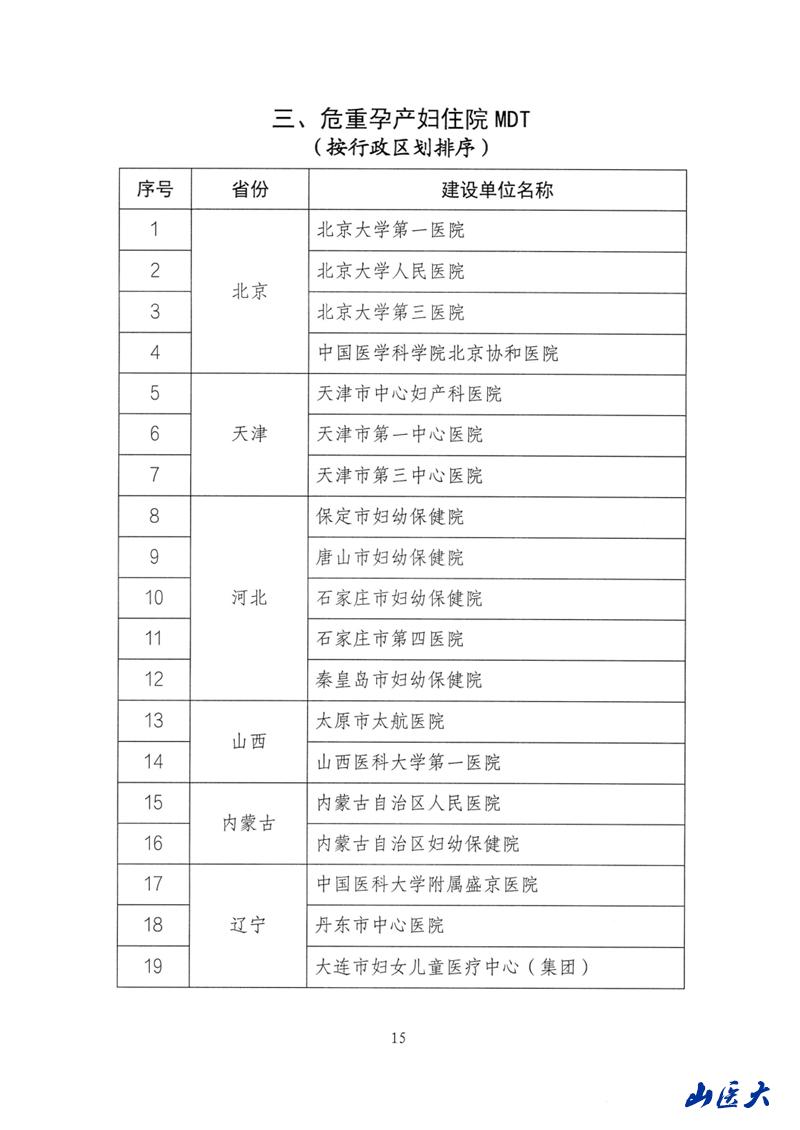 近日,国家卫生健康委发布了关于确定孕产妇多学科协作诊疗和产科亚专科建设单位的通知。经国家卫生健康委妇幼司审核,确定山西省7家机构为国家级孕产妇MDT建设单位,我校第一医院产科成为全省唯一一家同时荣获国家级高危孕产妇门诊MDT、母胎医学门诊MDT、危重孕产妇住院MDT的医疗单位。