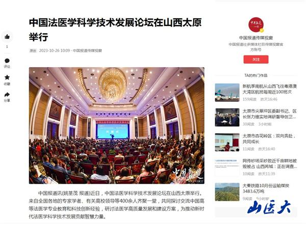 今日头条 | 中国法医学科学技术发展论坛在山西太原举行