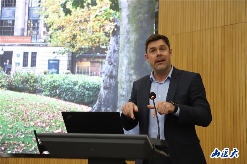 Adam先生以丰富的经验和专业的视角,向在场师生详细介绍了英国胡弗汉顿大学 2025 年暑期短期交流项目。该项目秉持 “语言强化 + 跨学科实践” 的核心理念,采用精品小班教学模式,每周安排 15 小时的英语强化课程,同时搭配 5 小时的兴趣选修课程,致力于全面提升学生的语言能力与综合素养。在宣讲过程中,Adam先生巧妙运用案例分析与互动问答的方式,深入浅出地阐述了暑期研学项目在跨文化交流、专业实践能力培养等方面的显著优势。他还通过精彩的展示,让同学们直观领略了胡弗汉顿大学先进的课程体系、一流的科研平台以及多元的校园生活。
