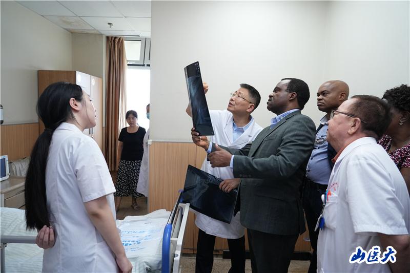 上午,雪松山医院专家团队首先来到我校第二医院院本部骨关节病区。骨科主任冯毅教授重点介绍了医院骨科在规范化临床查房、复杂病例诊疗流程以及高精尖手术技术方面的特色优势,特别是在复杂关节置换、翻修手术和保膝手术方面的丰富经验。骨关节病区主任张民教授表示,雪松山医院是西非地区的医疗标杆,希望通过研修班的病房查房、手术室观摩及病例讨论等环节,双方医务人员在真实临床场景中切磋技艺、分享经验,共同推动医疗服务质量提升与技术创新。