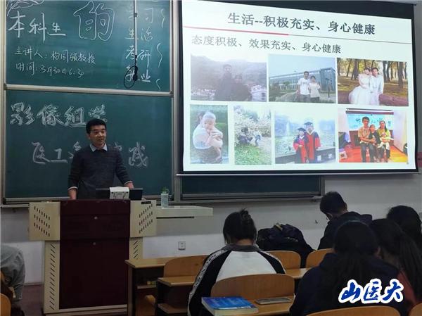 为扎扎实实落实好立德树人根本任务,不断提升“三全育人”的实效,在医学影像学院党总支的指导下,学院教工党支部主办的“师长有话说”大学生学业规划指导系列讲座,于近期在中都校区开讲。第一期和第二期分别由学院教工党支部书记杨国强副教授和青年教师张菲菲主讲,学院在中都校区的400余名本科生到会聆听。