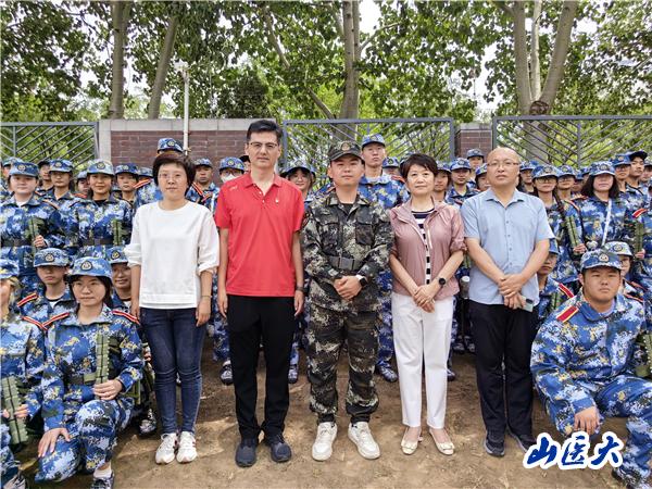 最后,老师们与管理学院全体参训成员合照留念。在新学期开学之际,此次慰问充分体现了学院对军训工作的关切与重视,参训学生深受鼓舞,将以更热情饱满的状态迎接下阶段的军事训练,高标准完成各项军训项目,展现山医管院学子的崭新风貌!