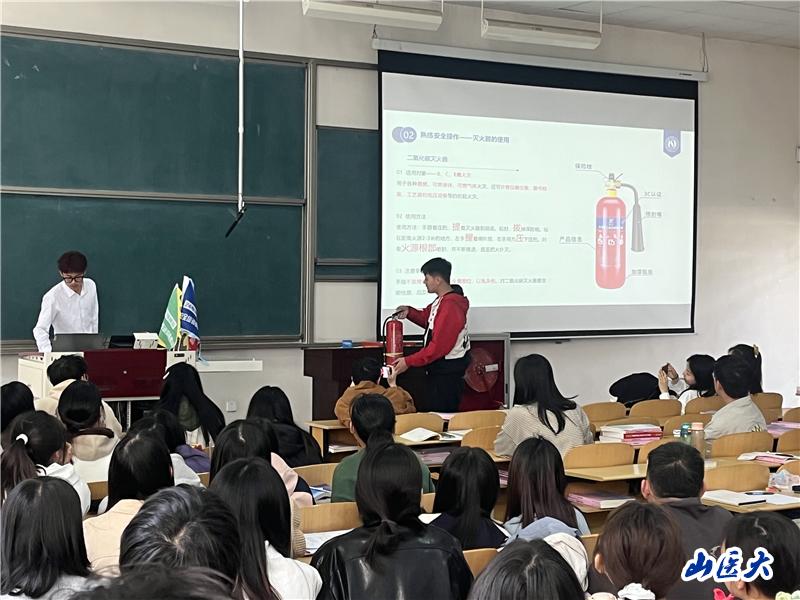 宣讲团成员从财产安全、人身安全、交通安全、消防安全等方面进行了生动宣讲。特别是消防安全,详细讲解了火灾常见的形成原因,灭火器的种类和火灾报警及疏散等安全常识,并演示了防火面具、灭火器、消防栓的应急操作,手把手地给同学们作了讲授。