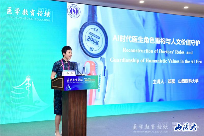 7月25日至27日,由中国高等教育学会医学教育专业委员会、中华医学会医学教育分会指导,全国医学教育发展中心主办,北京大学医学部承办,人民卫生出版社、北京大学医学出版社、《中华医学教育杂志》、CCMTV临床频道协办的“医学教育论坛(2025)”在北京国际会议中心召开。会议主题为“新范式 新挑战:数智赋能 融合发展”。来自18个国家/地区,230余所院校机构共2000余名教育教学管理专家及师生现场参会。我校人文社会科学学院邓蕊教授受邀出席会议并在“AI时代医学人文的疗愈与守护”分论坛上作了题为《AI时代医生角色重构与人文价值守护》的主题发言。
