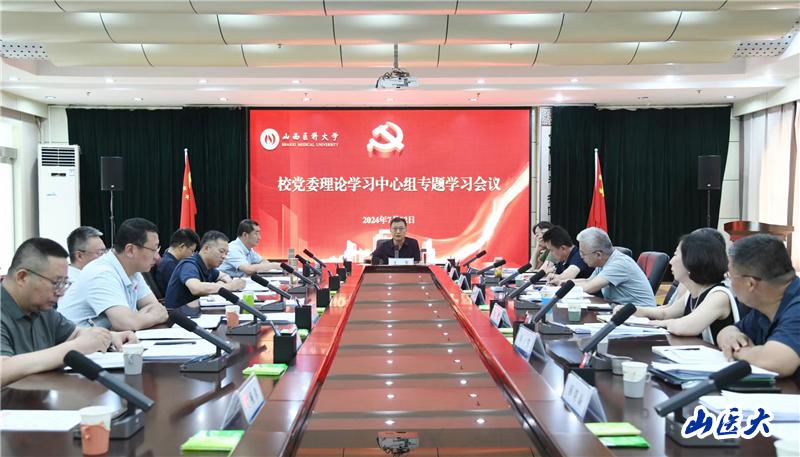 7月22日上午,校党委理论学习中心组在迎泽校区教学办公楼第一会议室召开集体学习会,专题学习党的二十届三中全会精神,研究贯彻落实措施。校党委书记王军主持会议并讲话。